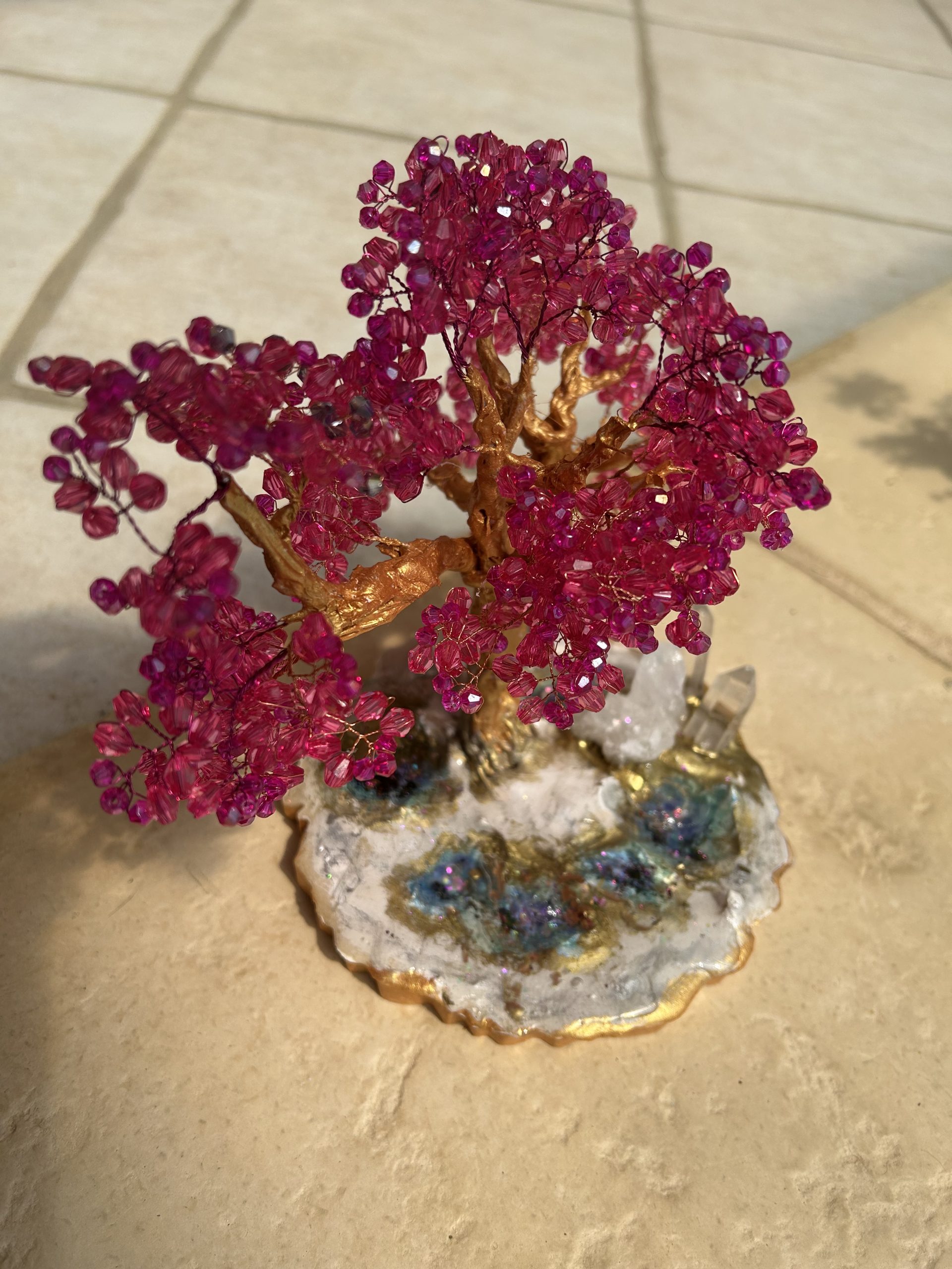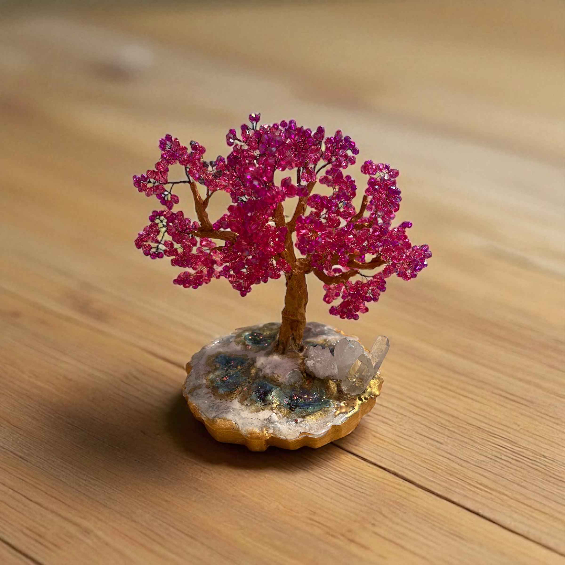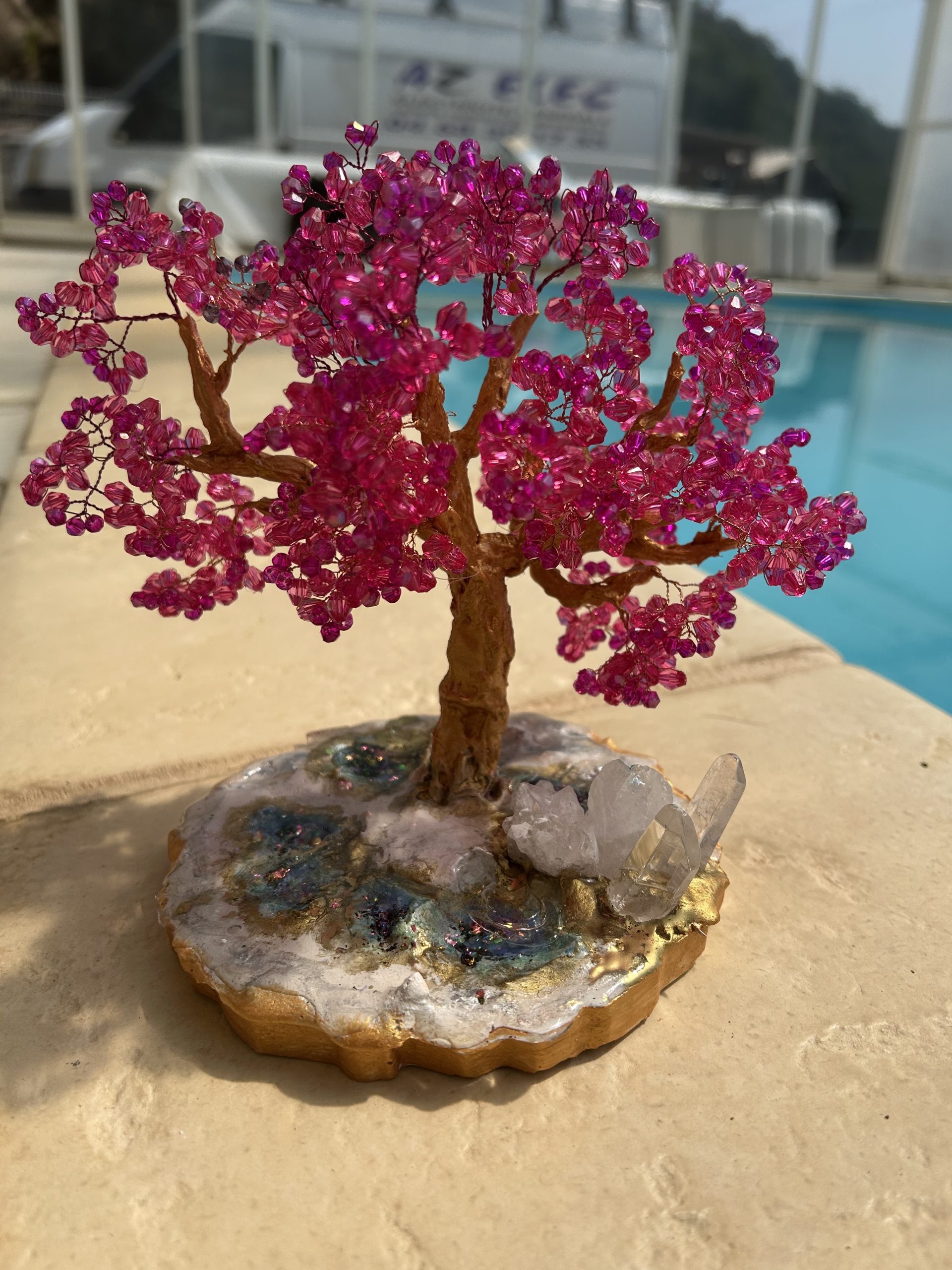 Arbre de Vie “Éclat Fuchsia” – Cristal autrichien & pointes de cristal