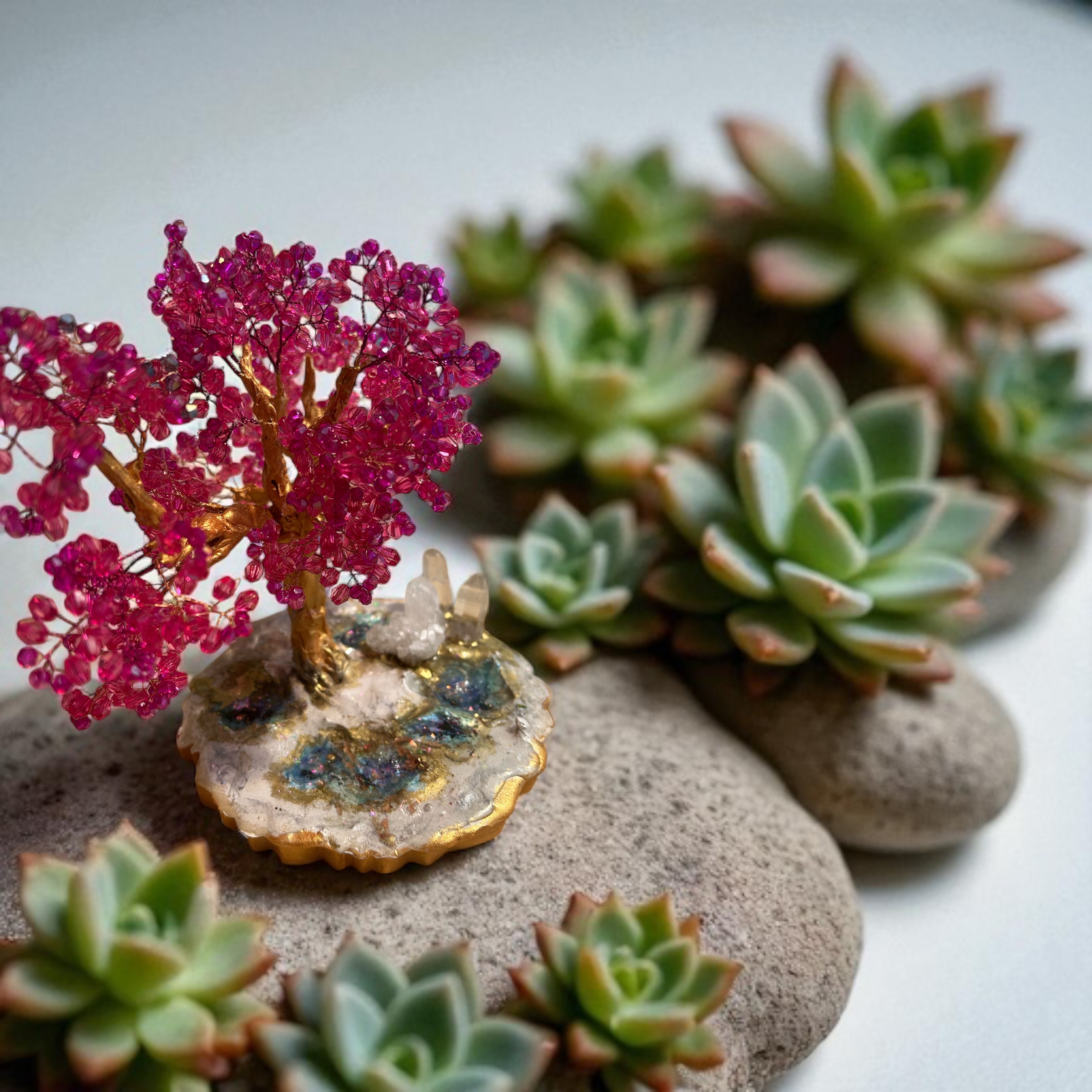 Chaque arbre est une pièce unique, fruit d’un travail minutieux mêlant savoir-faire artisanal et sens artistique. Plus qu’un objet décoratif, c’est un talisman qui invite à la sérénité et à l’élévation vibratoire.