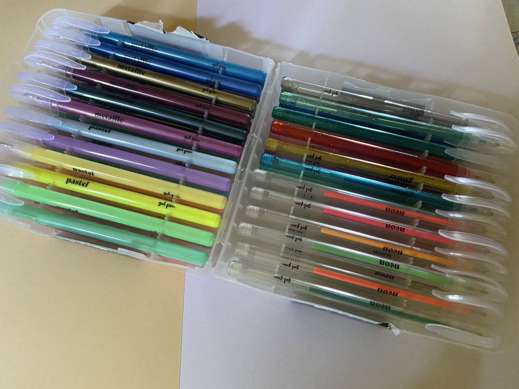 Bonjour à tous, je vais vous faire la présentation et test des gels pens de chez Action. C'est un des produits de chez Actions que j'ai découvert et que je trouve assez intéressant. Il s'agit desgels pens en boite de 48 stylos.